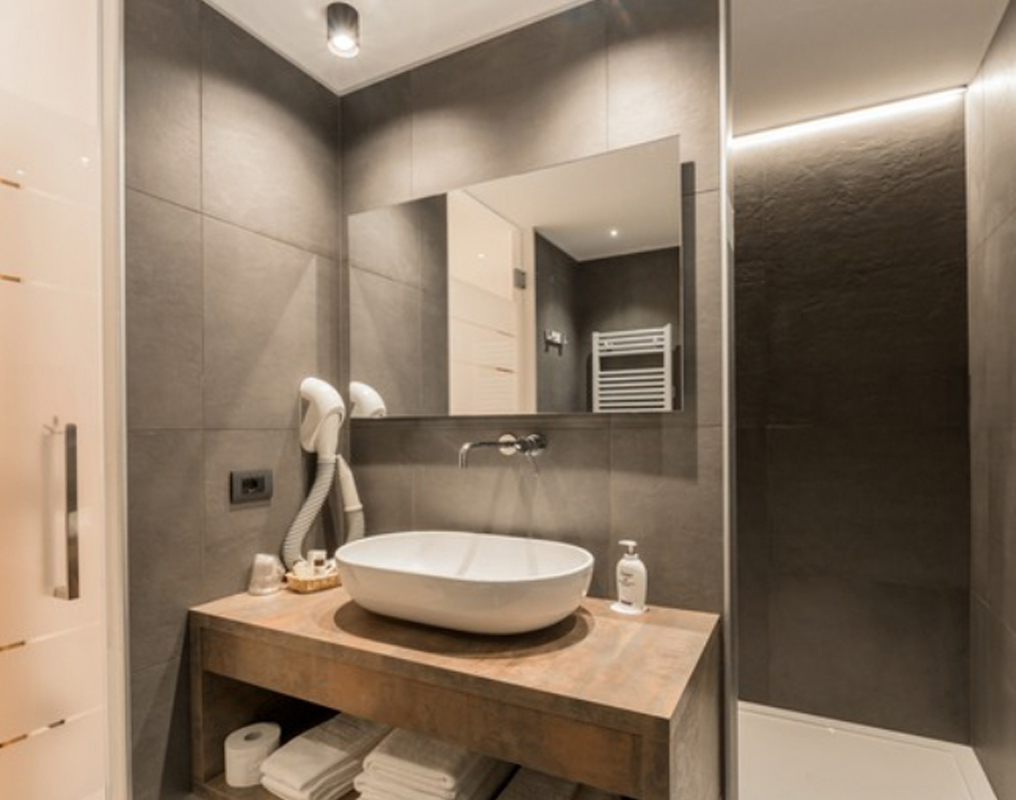 20 do 25 m² - pokój z 2 pojedyńczymi łóżami lub łóżkiem malżeńskim, łazienka zwykle z prysznicem, taras z widokiem panoramicznym, 3 i 4 łóżko w formie rozkłądanej kanapay typu "szuflada", pokoje po kompletnym remoncie