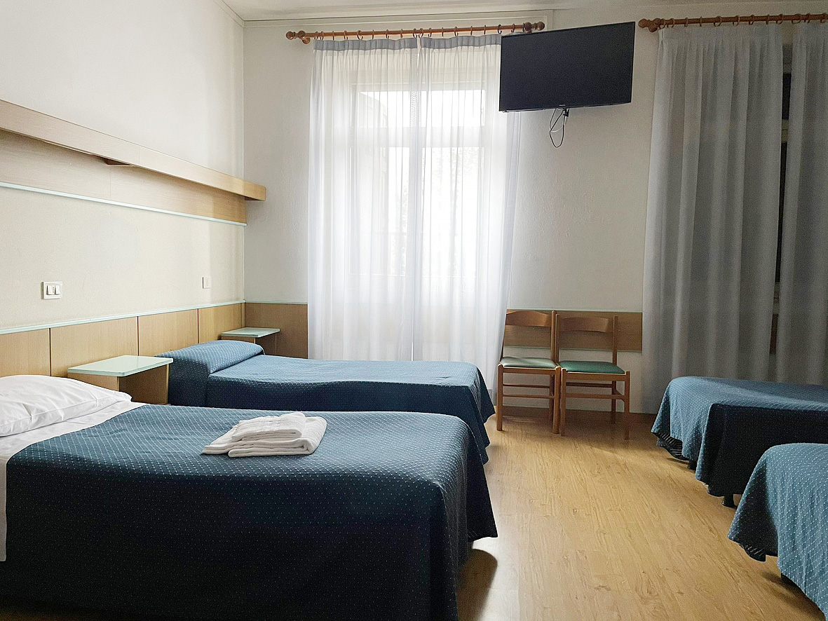 pokoje z 2 pojedynczymi łóżkami (łóżko małżeńskie na zapytanie) i możliwe dodatkowe łóżka, zazwyczaj balkon; 3. łóżko w formie łóżka pojedynczego, 4., 5. i 6. łóżko zazwyczaj w formie łóżek piętrowych