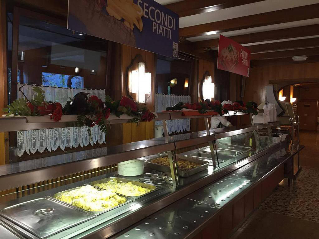 w formie self-service z wyborem 2 przystawek i 2 dań głównych z dodatkiem, bufet sałatkowy, owoce lub deser, karafka wody, inne napoje za opłatą