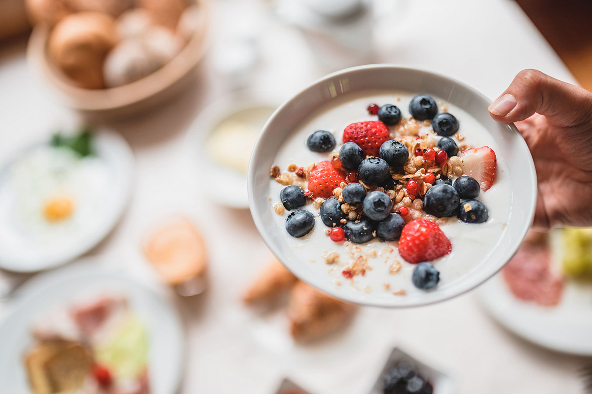 śniadanie w formie bufetu przygotowywane z lokalnych, ekologicznych składników, w tym napoje