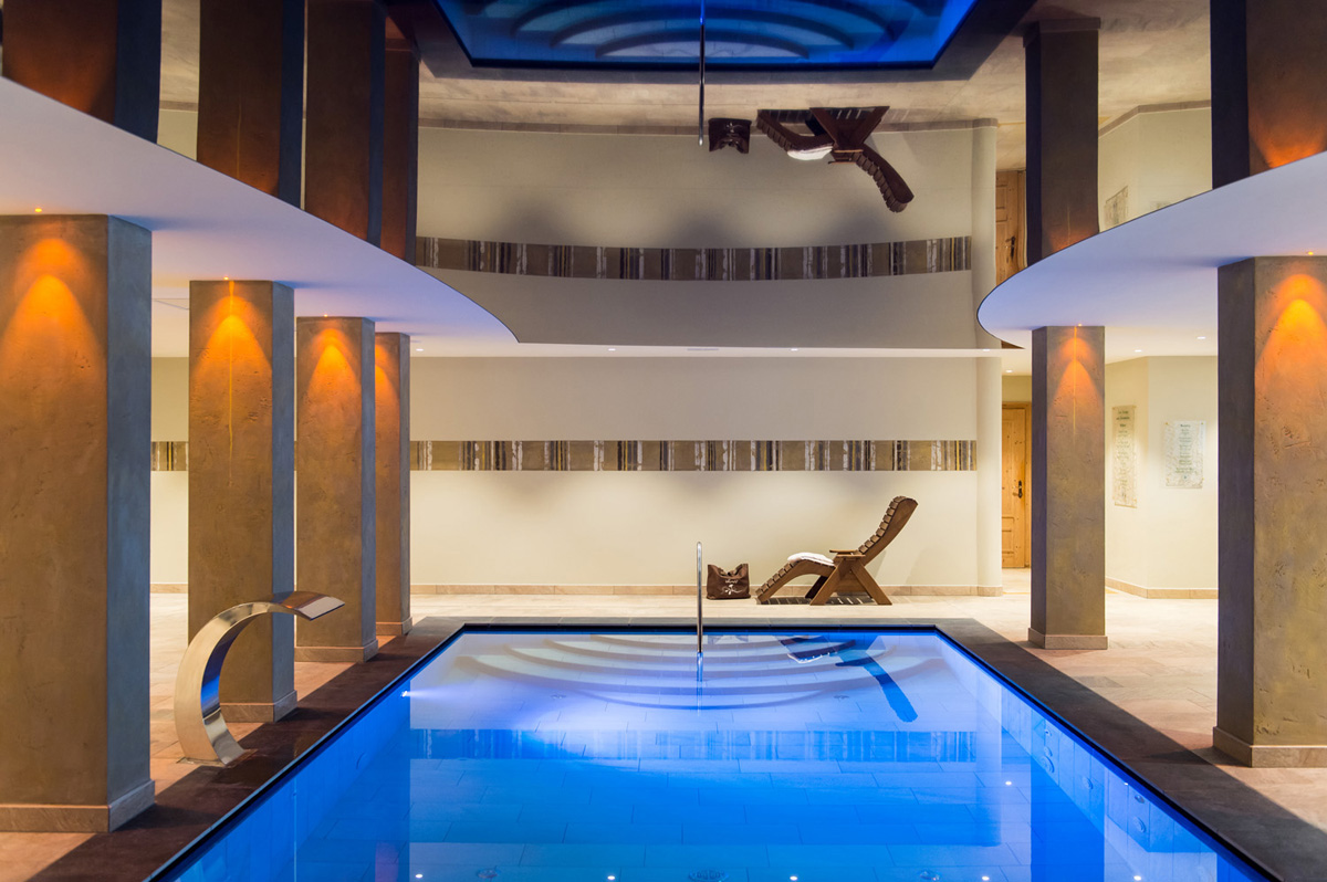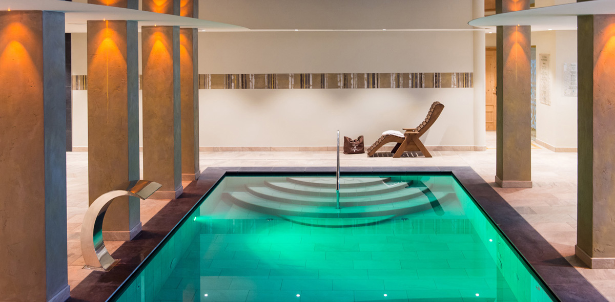 basen o wymiarach 12 x 5 m ze sztucznym wodospadem, jacuzzi# dla maksymalnie 8 osób, sauna fińska#, biosauna#, łaźnia parowa#, ścieżka Kneippa#, kącik relaksacyjny# z leżakami, masaże#*, zabiegi kosmetyczne#*; z usług oznaczonych # mogą korzystać dzieci poniżej 14 roku życia