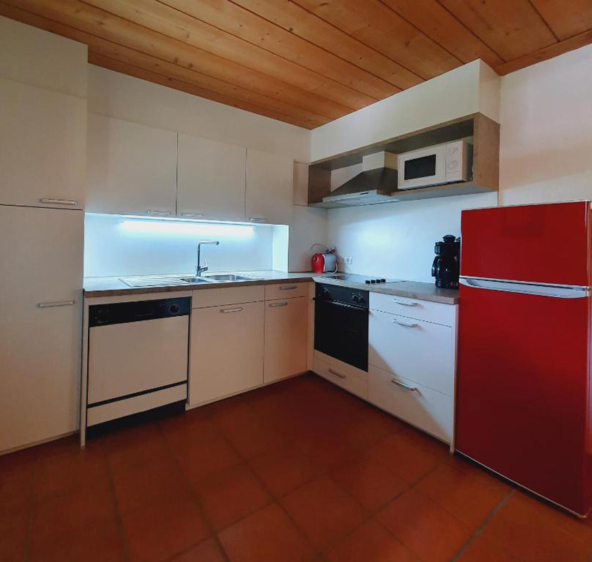 trilo 6 - 2 sypialnie z łóżkami podwójnymi, salon z aneksem kuchennym i rozkładaną sofą dla 2 osób, łazienka z wanną, taras