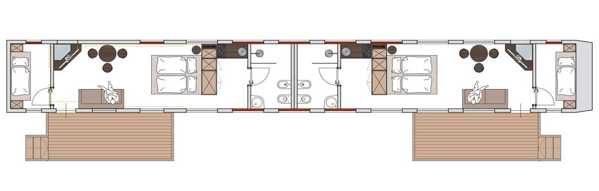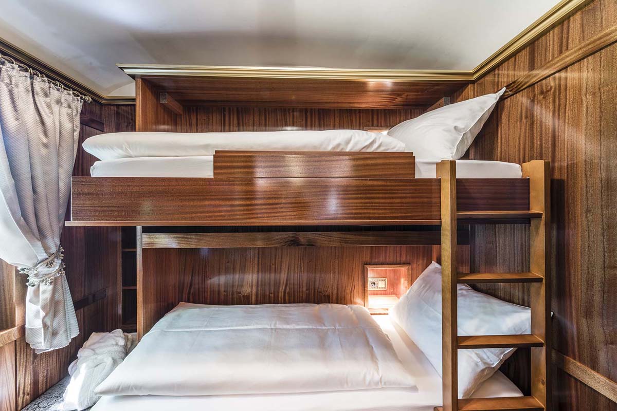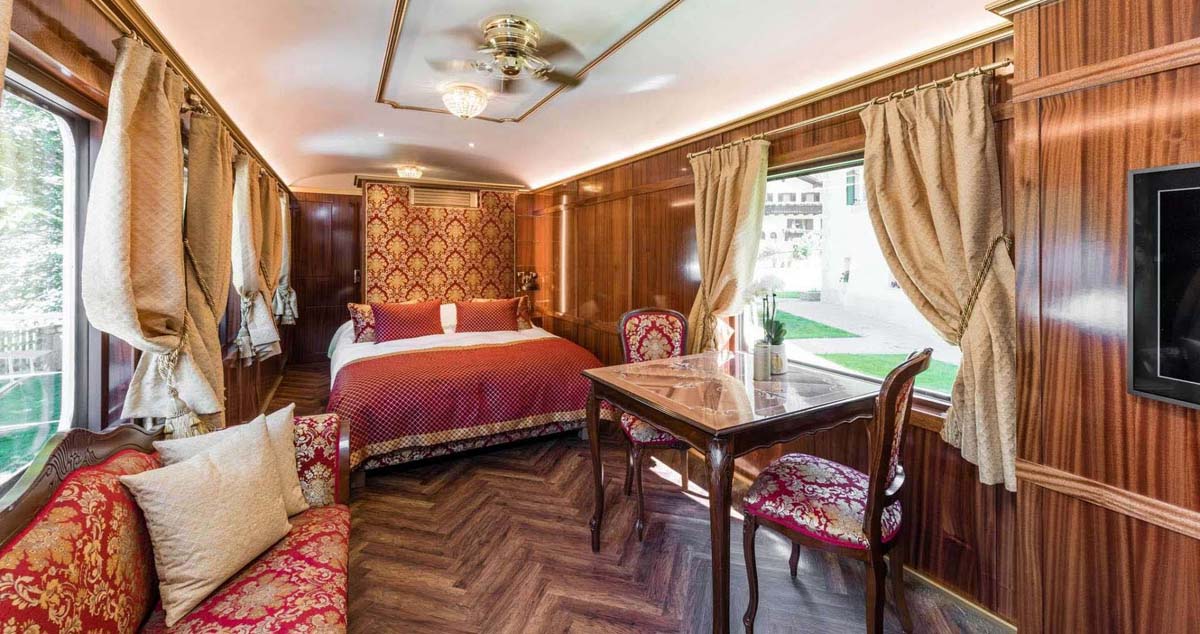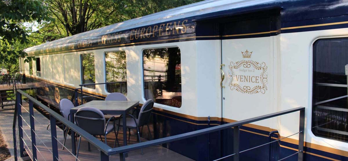 • unikalny apartament Orient Express dla par lub rodzin z dziećmi w stylowo urządzonych wagonach kolejowych z ogrzewaniem podłogowym i małym aneksem kuchennym