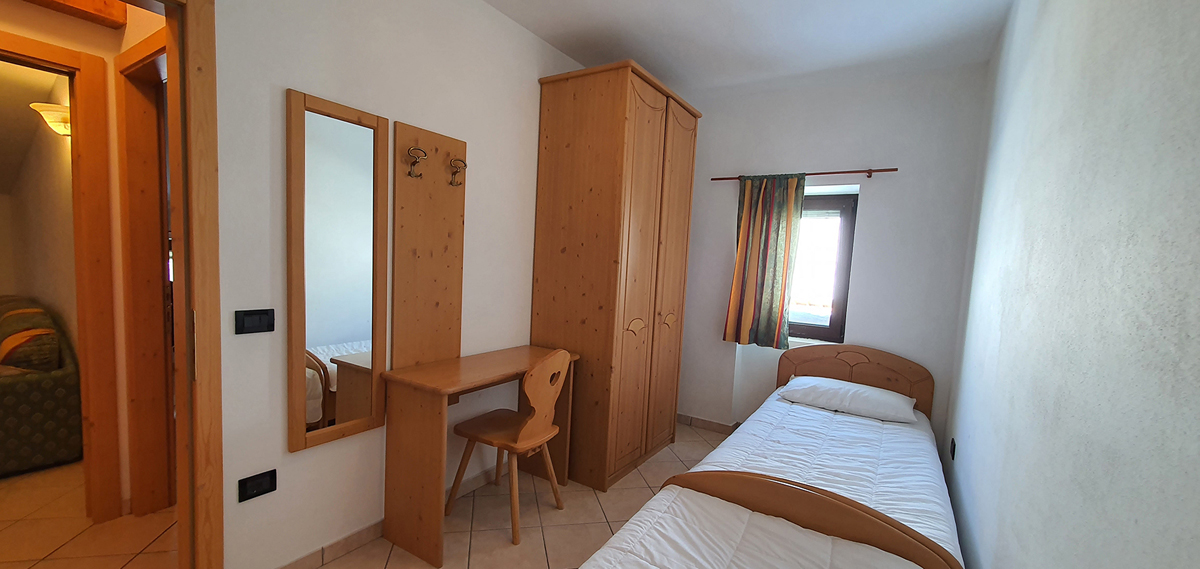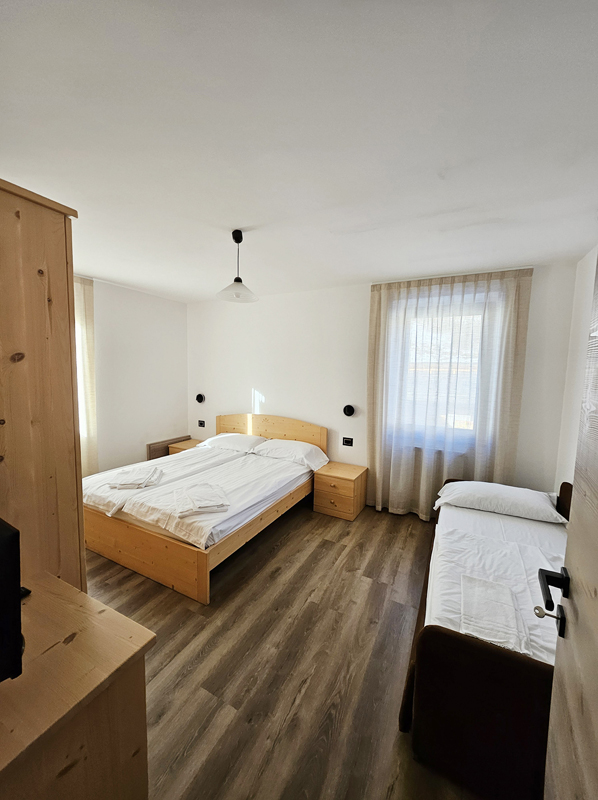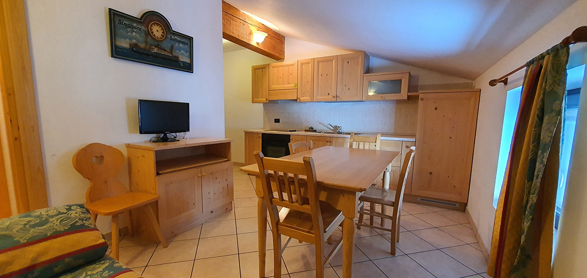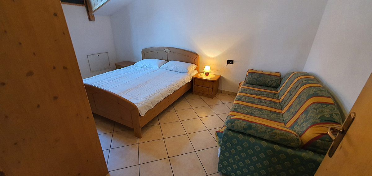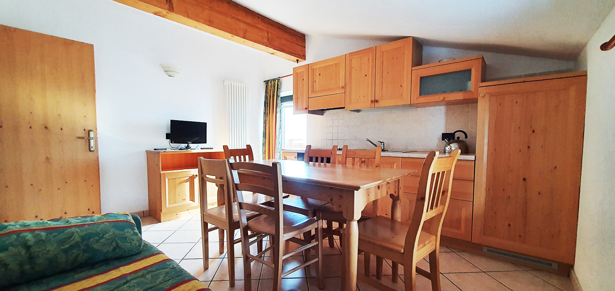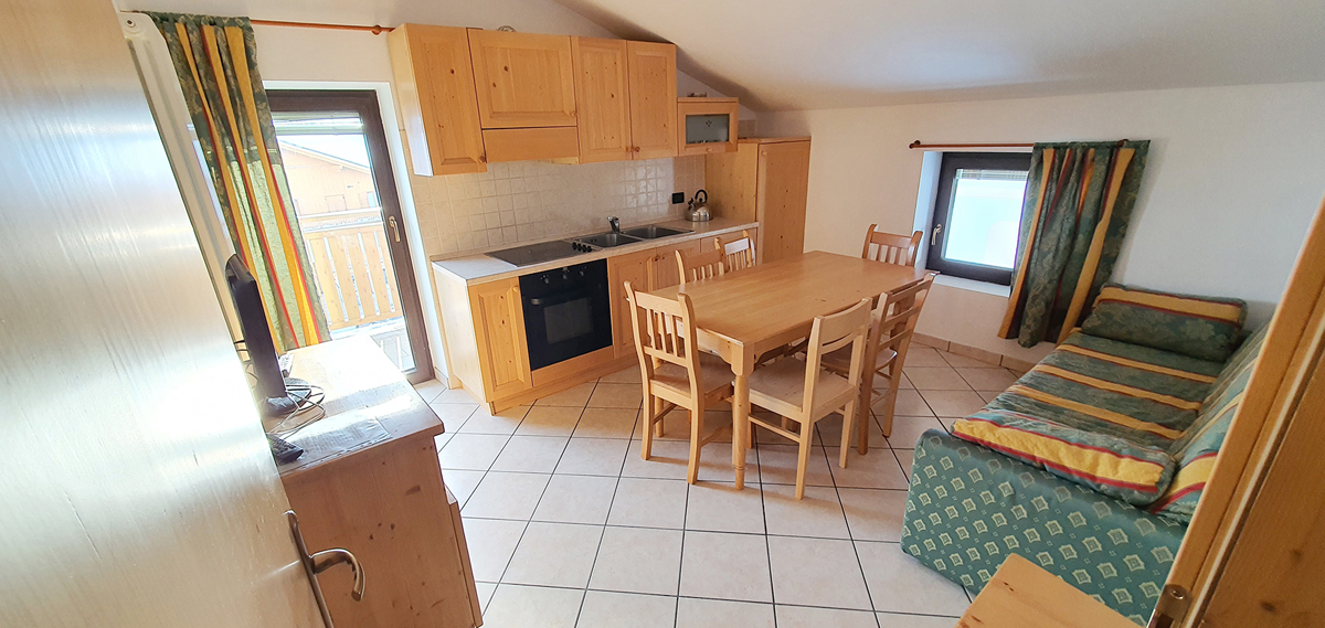 trilo 7 - 55 m² - 1 sypialnia z łóżkiem małżeńskim i rozkładaną kanapą typu „szuflada“ dla 2 osób, 1 sypialnia z 2 pojedynczymi łóżkami, pokój dzienny z aneksem kuchennym i rozkładaną kanapą dla 2 osób, łazienka, balkon; choć do dyspozycji jest 8 miejsc, to maksymalne obłożenie jest 7 osób