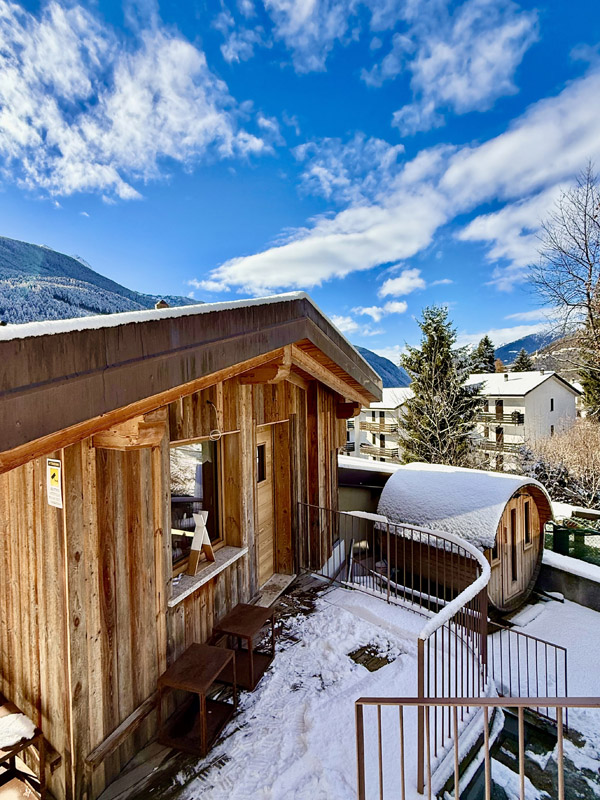 wanna z hydromasażem w pomieszczeniu* dla maksymalnie 4 osób, wanna z hydromasażem na zewnątrz* dla 2 osób, sauna na zewnątrz*, strefa relaksu w pomieszczeniu* z leżakami i herbatami ziołowymi, strefa relaksu na zewnątrz* z leżakami, ścieżka Kneippa*, przebieralnia z łazienką*