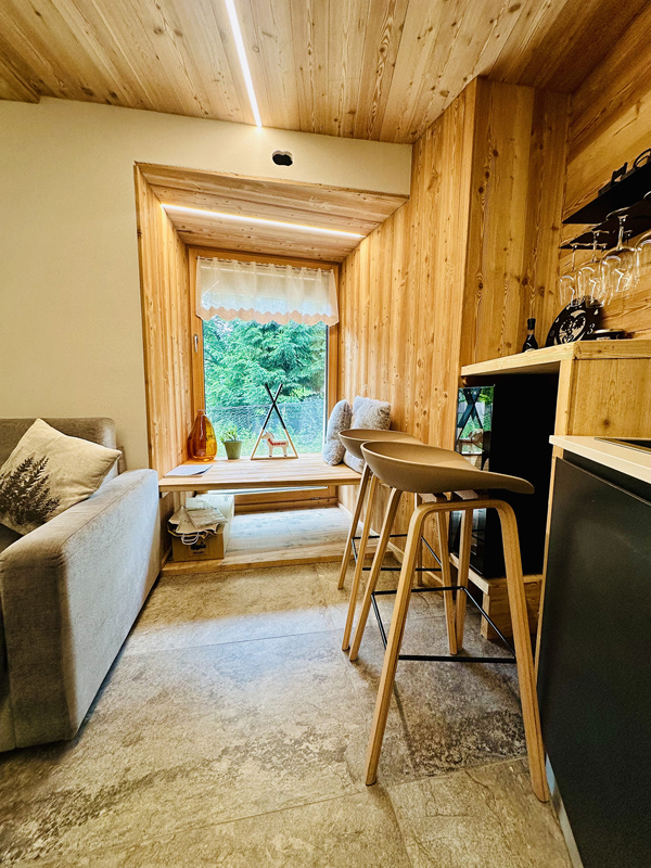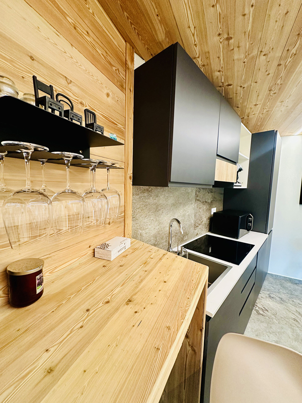 Smart TV (2x dla typów bilo i trilo), suszarka do włosów, kuchenka mikrofalowa, ekspres do kawy, czajnik elektryczny, Wi-Fi, piwniczka na wino (tylko dla typów trilo)