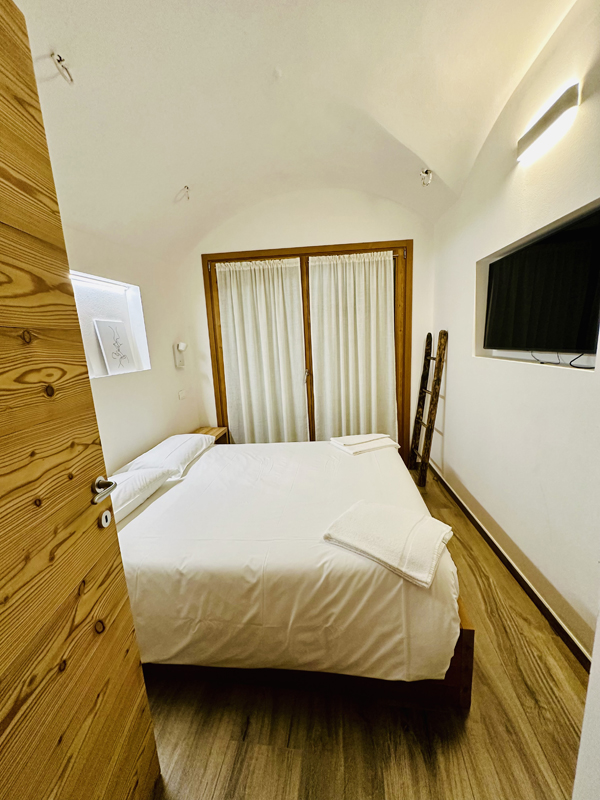 1 sypialnia z łóżkiem małżeńskim, 1 sypialnia z łóżkiem piętrowym, salon z aneksem kuchennym i rozkładaną sofą dla 2 osób, łazienka, balkon lub mały otwarty taras przy wejściu; maksymalna liczba osób w apartamencie to 4 osoby dorosłe i 2 dzieci poniżej 13 lat