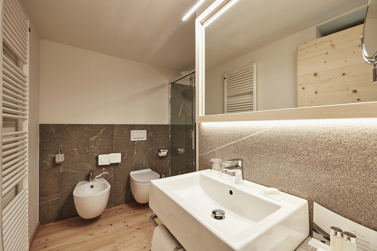 Telewizja satelitarna, telefon, suszarka do włosów, sejf, łącze internetowe Wi-Fi, minibar, jabłka z regionu Val Venosta, termofor, biurko, szlafroki i kapcie dla dobrego samopoczucia, kosmetyki Glacisse